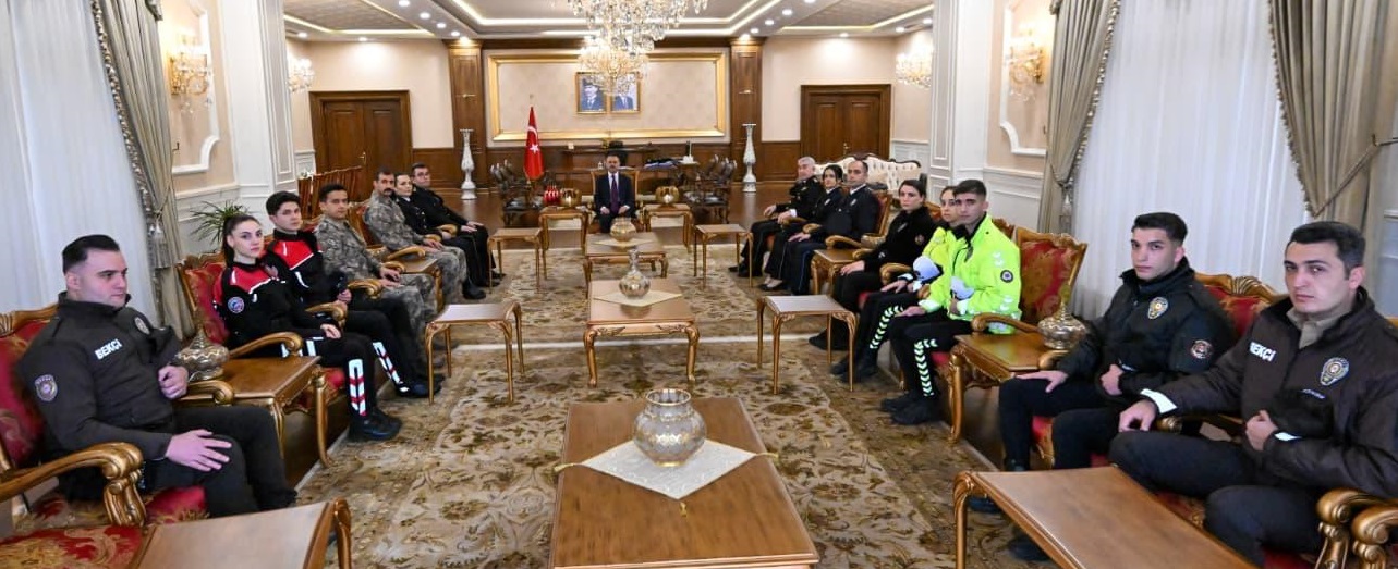 İl Emniyet Müdürü Faruk Karaduman, İl Emniyet Müdür Yardımcısı Erdal Aydınlık ve beraberindeki heyet, Türk Polis Teşkilatının 181. Kuruluş Yıl Dönümü ve Polis Haftası münasebetiyle Vali İlhami Aktaş’ı ziyaret ettiler.