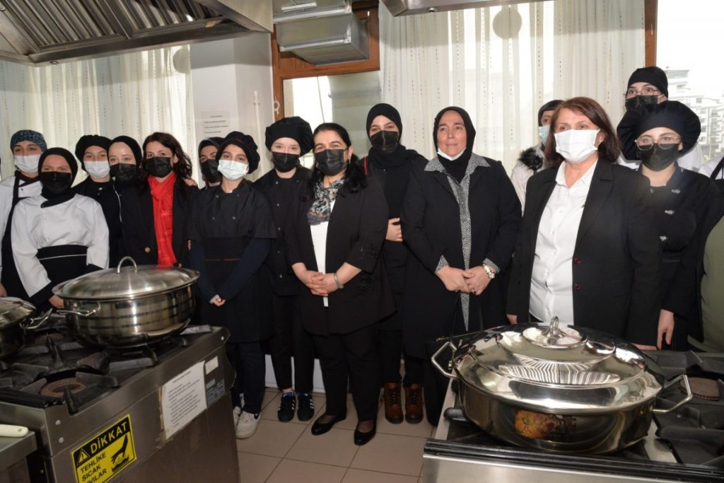 Öğrencilerle de bir araya gelen Bayan Yavuz, bir süre sohbet ederek her birine başarı dileklerinde bulundu. Sohbetin ardından öğrenciler, Bayan Yavuz ve beraberindeki misafirlere okul mutfağında hazırladıkları birbirinden güzel yemekleri ikram ettiler.