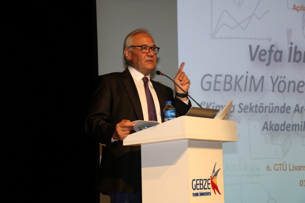GEBKİM Yönetim Kurulu Başkanı Vefa İbrahim Aracı, konuşmasında, “Türkiye'nin ilk 10 üniversitesi arasında bulunan Gebze Teknik Üniversitesi Fen Bilimleri Enstitüsü koordinatörlüğünde düzenlenen bu sempozyum bizim için çok değerli bir bilim üretimi etkinliğidir. Bilimsel bilginin bir değer olarak ortaya konabileceği yegane yerlerden olan enstitüler, gençlerimizin tam donanımlı bir şekilde İş hayatına atılması için büyük önem arz ediyor. Ar-Ge çalışmalarının yuvası konumdaki enstitülerimizin, ülkemizin bilim ve teknoloji kapasitesini artırılmasında, ulusal ve uluslararası projelerin hayata geçirilmesindeki rolünü gururla izliyoruz. Türkiye'nin ilk kimya İhtisas organize sanayi bölgesi olarak ülkemiz ekonomisine katkı sağlayacak çalışmalara ve yatırımlara büyük önem veriyoruz. Şunu da biliyoruz ki; en önemli yatırım geleceğimiz konumdaki gençlerimizdir.” ifadesini kullandı.