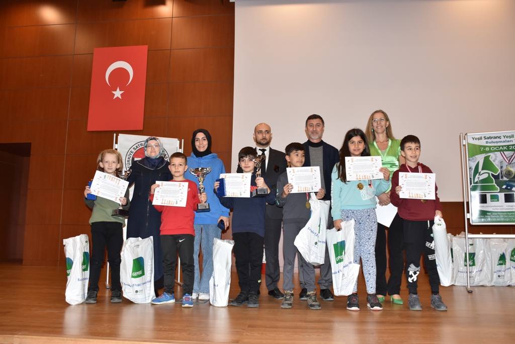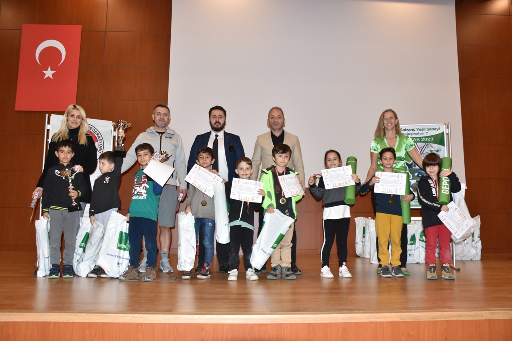 200 kadar sporcunun 4 kategoride toplam 6 maç oynadığı turnuvada ilk 10’a giren toplam 40 sporcuya ödülleri, 78 yaşında hayata veda eden plastik sektörünün duayen isimlerinden Osman Erkan’ın adının verildiği konferans salonunda verildi. Sporcu velileri GEPOSB’nin akıllı bina olarak tasarlanan 7 bin 900 metrekarelik kapalı alana sahip yeni yönetim merkezinin bekleme salonu ve yemekhanesinin yanı sıra, giriş katında oldukça geniş bir alanda sporcularını heyecanla bekledi. Gebze Belediyesi Başkan Vekili Sedat Çelik’in de katıldığı ödül töreninde ilk 10’a madalya, ilk 3’e kupa ve seyahat tipi satranç saati ile yine ilk 10’a GEPOSB tarafından geleneksel hale getirilen 2023 Atatürk takvimi hediye edildi. Yeşil Satranç’ın Kurucu Koordinatörü Belma Özgen Akbay’ın ihtiyacı olan sporculara şampiyona için işadamları ve belediyeden istediği destek salonda coşkulu alkış ile desteklendi.