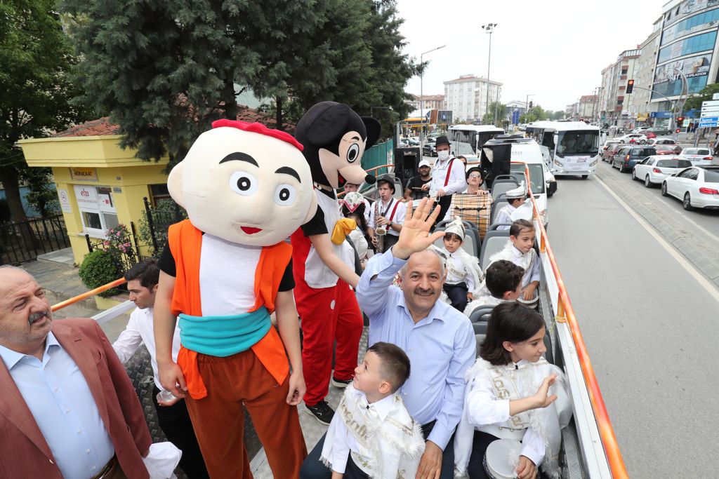 Gebze Belediyesinin düzenlediği Geleneksel Sünnet Şöleni Mevlana Kapalı Pazar Alanı’ndan gerçekleşti. Şölen öncesi, delikanlılığa adım atacak çocuklar üstü açık otobüsle şehir turu attı. Şehir turunda Gebze Belediye Başkanı Zinnur Büyükgöz’ün de kendilerini yalnız bırakmadığı çocuklar, bandonun çaldığı çeşitli şarkılarla gönüllerince eğlendi. Mevlana Kapalı Pazar yerinde düzenlenen şölene ev sahibi Gebze Belediye Başkanı Zinnur Büyükgöz’ün yanı sıra AK Parti Gebze İlçe Başkanı Recep Kaya, belediye başkan yardımcıları, meclis üyeleri, mahalle muhtarları, STK üyeleri, çocukların aileleri de katıldı.