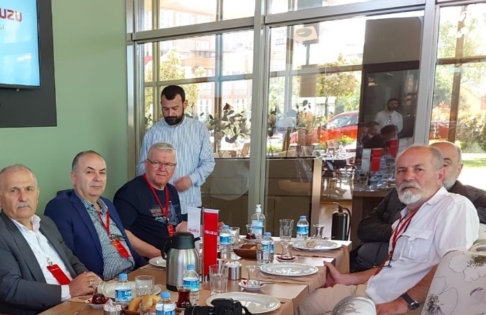 Anadolu ISUZU Genel Müdürü Tuğrul Arıkan (Soldan ikinci), tesisler gezilmeden önceki kahvaltılı basın toplantısında otomotiv sektörüne ve firmanın başarılı çalışmaları hakkında önemli açıklamalarda bulundu, gazetecilerin çeşitli sorularını yanıtladı.