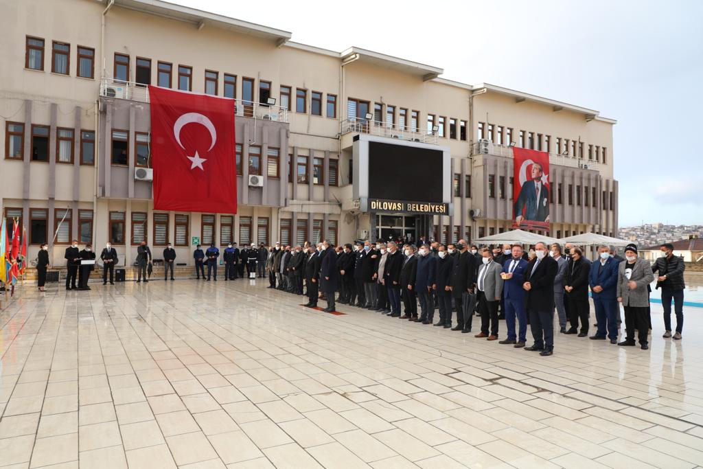 Belediye önünde başlayan anma töreninde Dilovası Kaymakamı Metin Kubilay ve Dilovası Belediye Başkanı Hamza Şayir’in çelenk sunumu ve saygı duruşunun ardından ve İstiklal Marşı okundu.