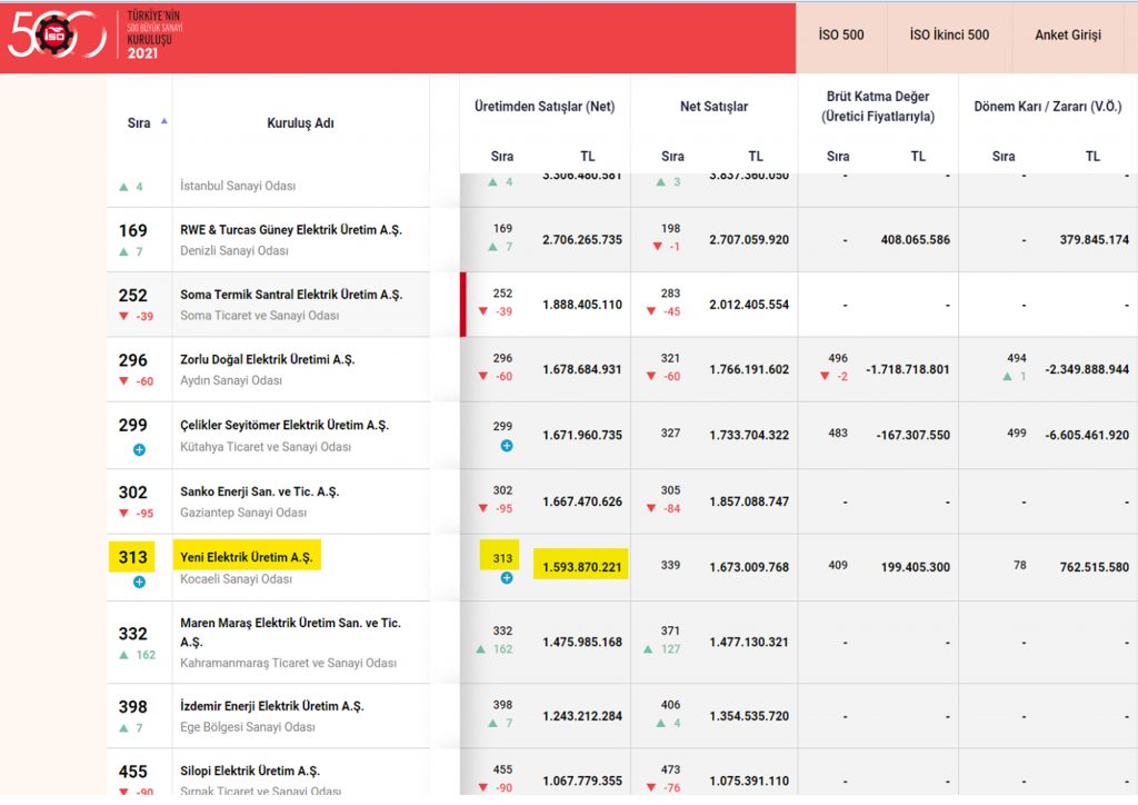 01.07.2021 tarihinde Gebze Asliye Ticaret Mahkemesi kararıyla şirkete “Yönetim Kayyumu “olarak atanan Gebzeli İktisatcı Mali Müşavir Selahattin BAL , altı ayda yaptığı çalışma ile 2021 verileri ile Yeni Elektrik Üretim A.Ş. ni İflastan çıkartıp , İstanbul Sanayi Odası tarafından geçtiğimiz Mayıs ayında açıklanan ilk büyük 500 şirket arasında 313. şirket olarak açıklanmış ve firmayı bu büyüklüğüne getirmişti. Gebzeli Selahattin BAL’ın bu başarısı sadece 500 büyük şirket patronlarının dikkatlerini değil, yurtdışı iktisat dünyasının da dikkatlerini çekmişti. Ayrıca Firma aynı sıralamada Kocaeli'nin ilk 500 firma sıralamasında da 84 firma arasındaki yerini almıştı.