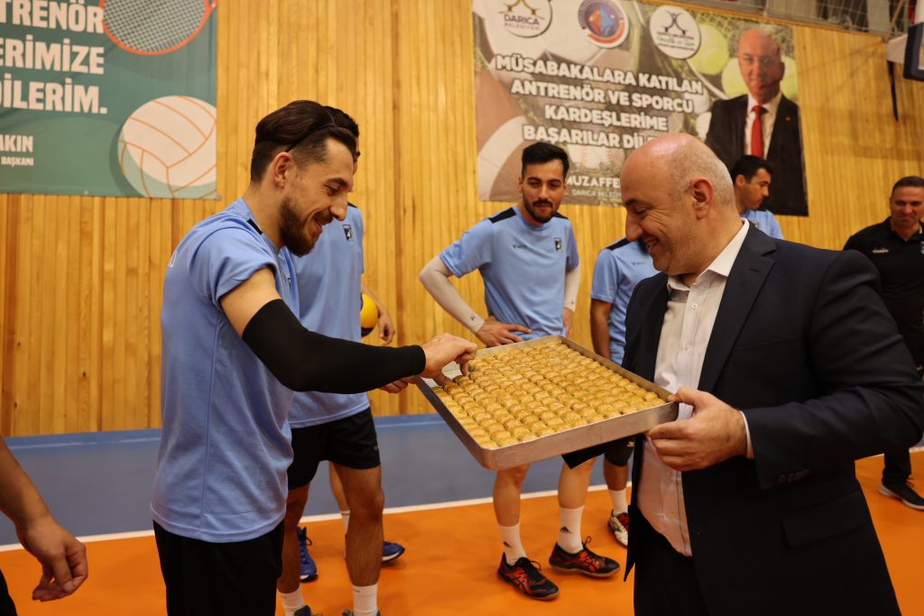 Darıca Belediye Başkanı Muzaffer Bıyık, toplantı sonrasında voleybol takımının antrenmanını da takip ederken sporculara baklava ikramında bulundu. Sezon boyunca voleybol takımının yanında olacaklarını ifade eden Başkan Muzaffer Bıyık, Darıcalıları da voleybol takımının maçlarına davet etti. Sporcular da kendilerini yalnız bırakmayan ve her zaman destek olan Belediye Başkanı Muzaffer Bıyık’a teşekkür ettiler.