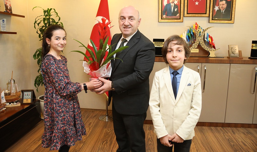 Darıca Belediye Başkanı Muzaffer Bıyık, 23 Nisan Ulusal Egemenlik ve Çocuk Bayramı dolayısıyla çocukları makamında ağırladı. Çocukları kapıda karşılayan Başkan Muzaffer Bıyık, makamını Darıca Namık Kemal İlkokulu 4-A sınıfı öğrencileri Zülal Tural ve Emre Baylan’a bıraktı. Başkan Muzaffer Bıyık’a çiçek takdim eden Darıcalı minikler daha sonra başkanlık koltuğuna oturarak başkan yardımcıları ve birim müdürlerine çeşitli talimatlar verdiler.