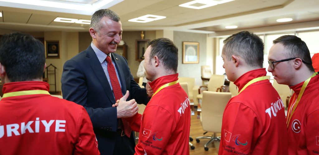 Başkan Büyükakın, Peru’da yapılan Down Sendromlular Dünya Şampiyonası’nda üçüncülüğü elden Futsal Milli Takım sporcularını makamında konuk etti