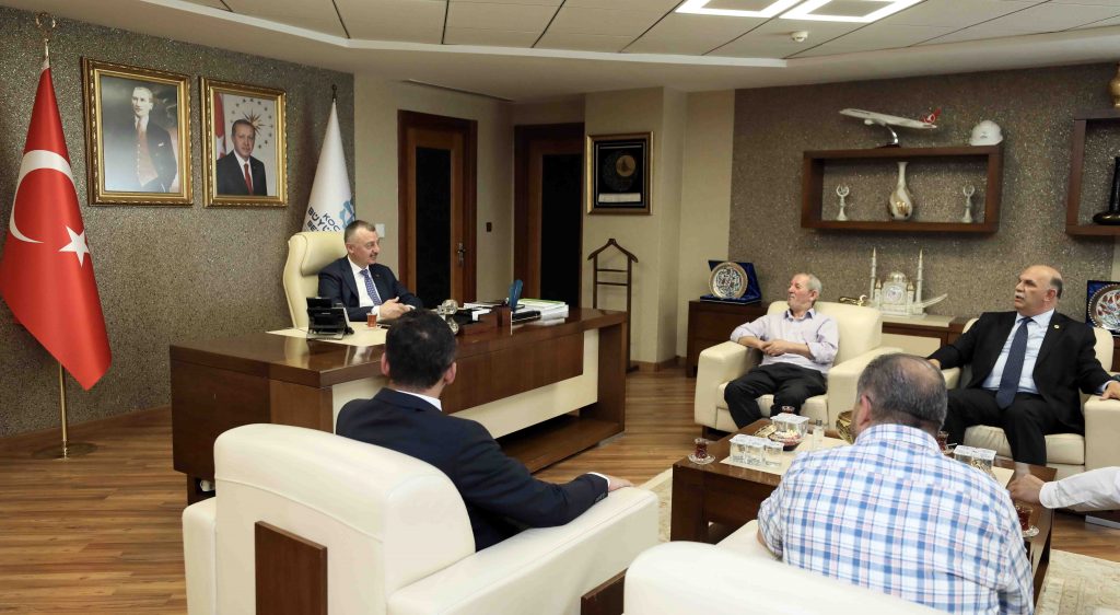 Marmara Belediyeler Birliği ve Kocaeli Büyükşehir Belediye Başkanı Doç. Dr. Tahir Büyükakın, Türkiye Harp Malulü Gaziler, Şehit Dul ve Yetimler Derneği Kocaeli Şube Başkanı Şaban Arlı, Akmeşe Sosyal Yardımlaşma ve Dayanışma Derneği Fatih Aktürk, Balkan Göçmenleri Kültür ve Dayanışma Derneği Başkanı İlhan Topaloğlu ve beraberindeki yönetim kurulu üyelerini makamında konuk etti. Misafirlerini ayrı ayrı ağırlayan Başkan Büyükakın, Kocaeli gündemi başta olmak üzere ulusal ve uluslararası konuların ele alındığı görüşmede, “Bugün şehrimizde ve ülkemizde güvenli bir şekilde yaşıyorsak, bu toprakları bize vatan olarak bırakan aziz şehitlerimiz ve gazilerimiz sayesindedir. Şehitlerimizi bir kez daha saygı ve rahmetle anıyor, gazilerimize minnet ve şükranlarımı sunuyorum” dedi.