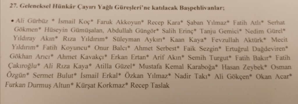 İŞTE GÜREŞLERE KATILACAK OLAN BAŞPEHLİVANLAR :