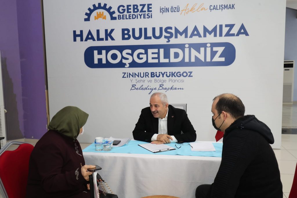 Gebze Belediye Başkanı Zinnur Büyükgöz, Halk Buluşmalarında Gebzeli hemşerileriyle bir araya geliyor. Gebze’de Halk Buluşmalarının günü değişti. Daha önceden her hafta çarşamba günleri hemşerilerini Halk Buluşmasında ağırlayan Gebze Belediye Başkanı Zinnur Büyükgöz, vatandaşların taleplerini artık her hafta salı günleri dinliyor. Osman Hamdi Bey Kültür Merkezi’nin fuaye alanında vatandaşlarla bir araya gelen Başkan Büyükgöz, kendisine iletilen talep, istek, görüş, öneri ve şikayetleri dinliyor. İlgili birim müdürlerinin de hazır bulunduğu Halk Buluşmasında kendisine iletilen talebe göre gerekli talimatı ilgilisine veren Başkan Büyükgöz; sorunların çözümü ve taleplerin hızla yerine getirilmesini sağlıyor.