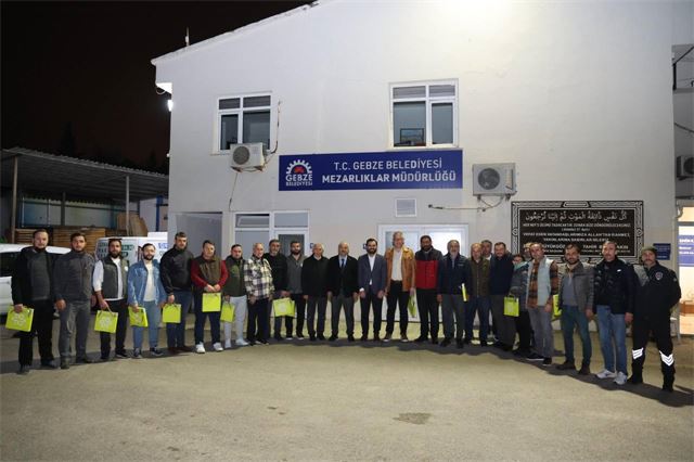 Belediye çalışanı mesai arkadaşlarıyla bir araya gelen Gebze Belediye Başkanı Zinnur Büyükgöz, “Gebze Belediyesi ailesinin mensubu siz değerli kardeşlerimin ve kıymetli ailelerinin mübarek Ramazan Bayramlarını en kalbi duygularımla tebrik ederim” dedi