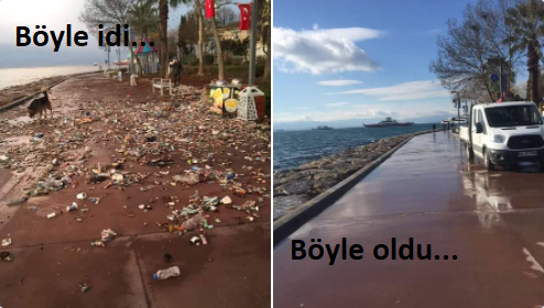 "Deniz kendini, ekiplerimiz de Eskihisar'ı temizledi. Fotoğraflar çok şey anlatır. Lütfen denizleri kirletmeyelim..."