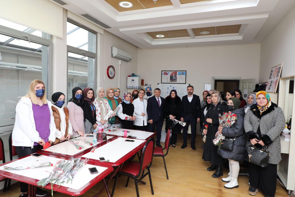 Belediye de çalışan kadın personelle kahvaltının ardından ilçe de ki eğitim kurumlarını ve çalışan kadınları ziyaret eden Başkan Şayir, İlçe Başkan vekili Av. Fevzi Karataş ve AK Parti Kadın Kolları Başkanı Gülay Artut’la birlikte KO-MEK Eğitim Merkezini, Kadın El Sanatları Kursu, Halk Eğitim Merkezi’ni ziyaret ederek kursiyerlerle bir araya geldiler. Kursiyerlerden çalışmaları hakkında bilgiler alan Başkan Şayir ve beraberindekiler bayan kursiyerlerin Kadınlar Gününü kutladılar.