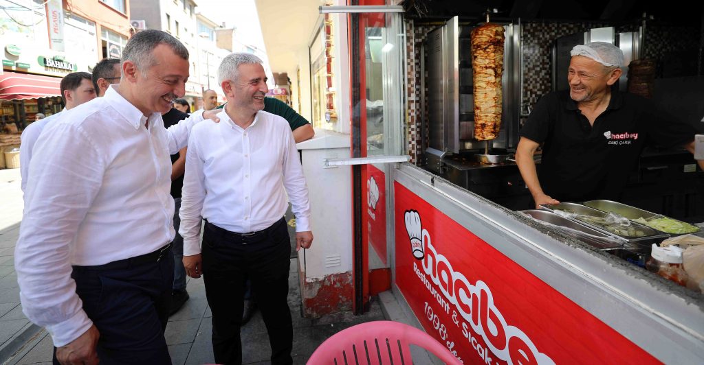 Gebze’de İbrahim Ağa Caddesi’nde esnafları ziyaret eden Başkan Büyükakın, “Halkımızla gönül diliyle konuşuyoruz. Vatandaşlarımızla tek yürek bir şekilde hizmetlerimizi ortaya koyuyoruz” dedi.