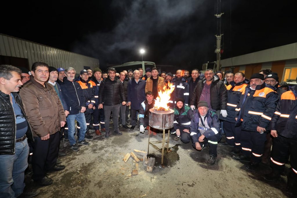 Belediye şantiyesinde saha personelleriyle bir araya gelen Gebze Belediye Başkanı Zinnur Büyükgöz, balık-ekmek ve akabinde tatlı ikramında bulundu.