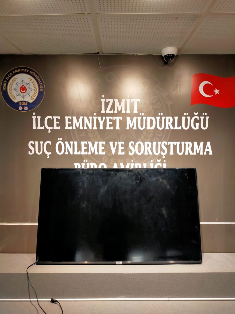 İzmit ilçesinde meydana gelen İş Yerinden ve Kurumdan Hırsızlık(30.000TL nakit ve televizyon) olayını gerçekleştiren E.Ö, polis ekipleri tarafından suç eşyası televizyonla birlikte yakalandı ve çıkarıldığı mahkemece tutuklandı, Konuya ilişkin yapılan basın belgelendirmesi şöyle:
