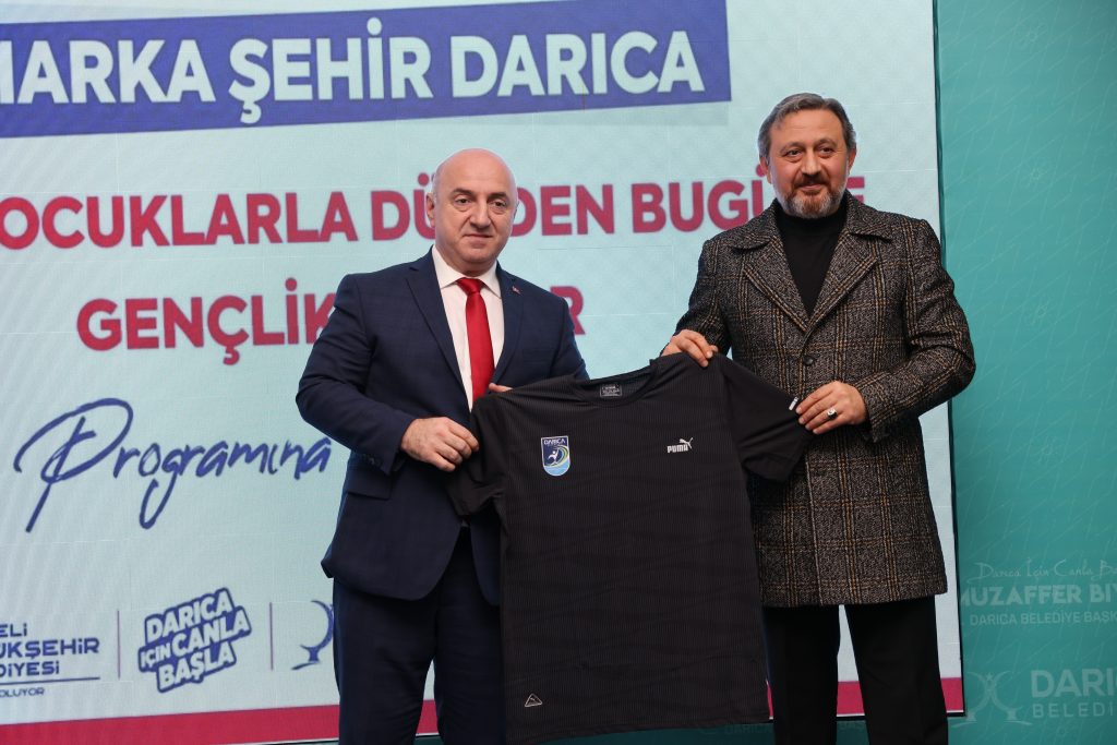 AK Parti Kocaeli Milletvekili Mehmet Akif Yılmaz ve Kocaeli Büyükşehir Belediyesi Başkanvekili Yaşar Çakmak da selamlama konuşması yaparak başarılı genç sporcuları tebrik ettiler. Darıca’nın sporda örnek olduğunu belirten Yılmaz ve Çakmak, katkılarından dolayı Başkan Muzaffer Bıyık’ı tebrik ettiler. Program sonrasında sporcularla hatıra fotoğrafı çekilirken Başkan Muzaffer Bıyık, protokole bölgenin sporda markası haline gelen Darıca Belediyesi Eğitim ve Spor Kulübü’nün formasını hediye etti.