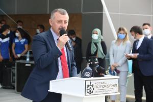 Kocaeli Gebze Tatlıkuyu Mahallesi’nde yapımını tamamlanan GEBZESEM’in vatandaşların, özellikle gençlerin hizmetinde olduğunun altını çizen Başkan Büyükakın, “Spor tesislerimizin tamamı tüm Kocaeli halkının hizmetindedir. Her yaştan vatandaşımız buralara gelip sporlarını yapabilirler. 7’den 70’e herkes en az bir spor dalı ile ilgilenmeli. Bunun için Spor Kenti Kocaeli’nin muhtelif yerlerinde yürüyüş yolları yapıyoruz, bisiklet yolları yapıyoruz, mahallelere açık alan spor sahası yapıyoruz, okullara spor salonları ve tesisler yapıyoruz. Sağlıklı bir yaşamın sporsuz olmayacağını biliyoruz. Vatandaşlarımıza, özellikle gençlerimize bol sporlu ve sağlıklı günler diliyorum” dedi.