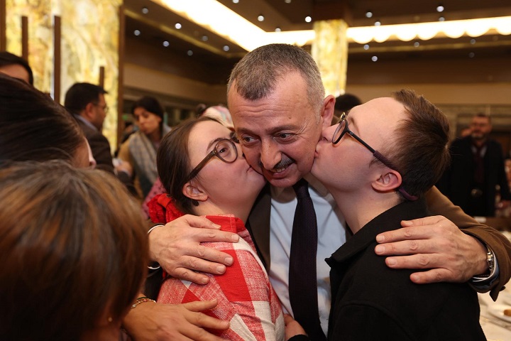 Kocaeli Büyükşehir Belediye Başkanı Tahir Büyükakın, özel bireylere yönelik düzenlenen iftar programında çocukların yoğun sevgi gösterileriyle karşılandı. Salona girer girmez alkış yağmuruna tutulan Büyükakın’ın etrafı, konuşma yaptığı sırada çocuklar tarafından sarıldı. Antikkapı Restoran’daki programa Kocaeli Valisi İlhami Aktaş da katıldı.