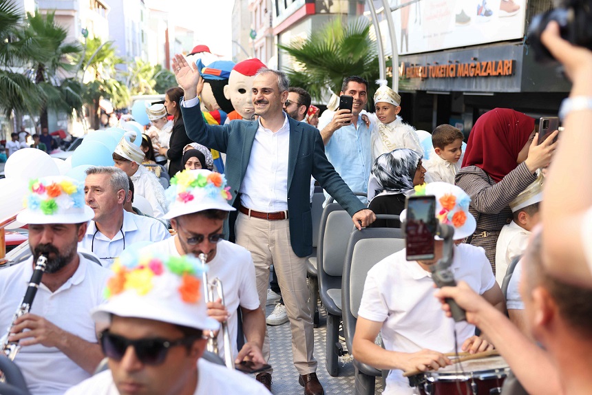 Sünnet şöleninin startı Prof. Dr. Necmettin Erbakan Kültür Merkezi açık otoparkından başlayan konvoy ile verildi. Çocuklarla birlikte gelin gibi süslenen açık otobüse binen Çayırova Belediye Başkanı Bünyamin Çiftçi, esnaf ve vatandaşları selamladı.