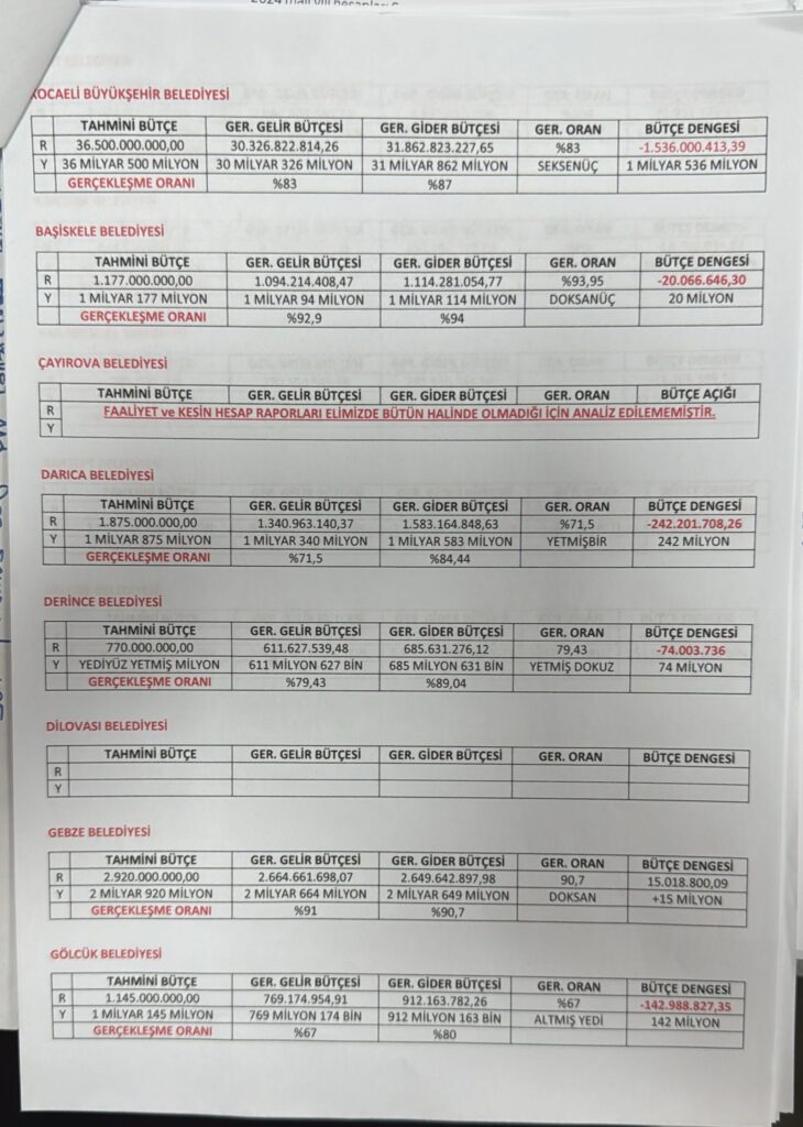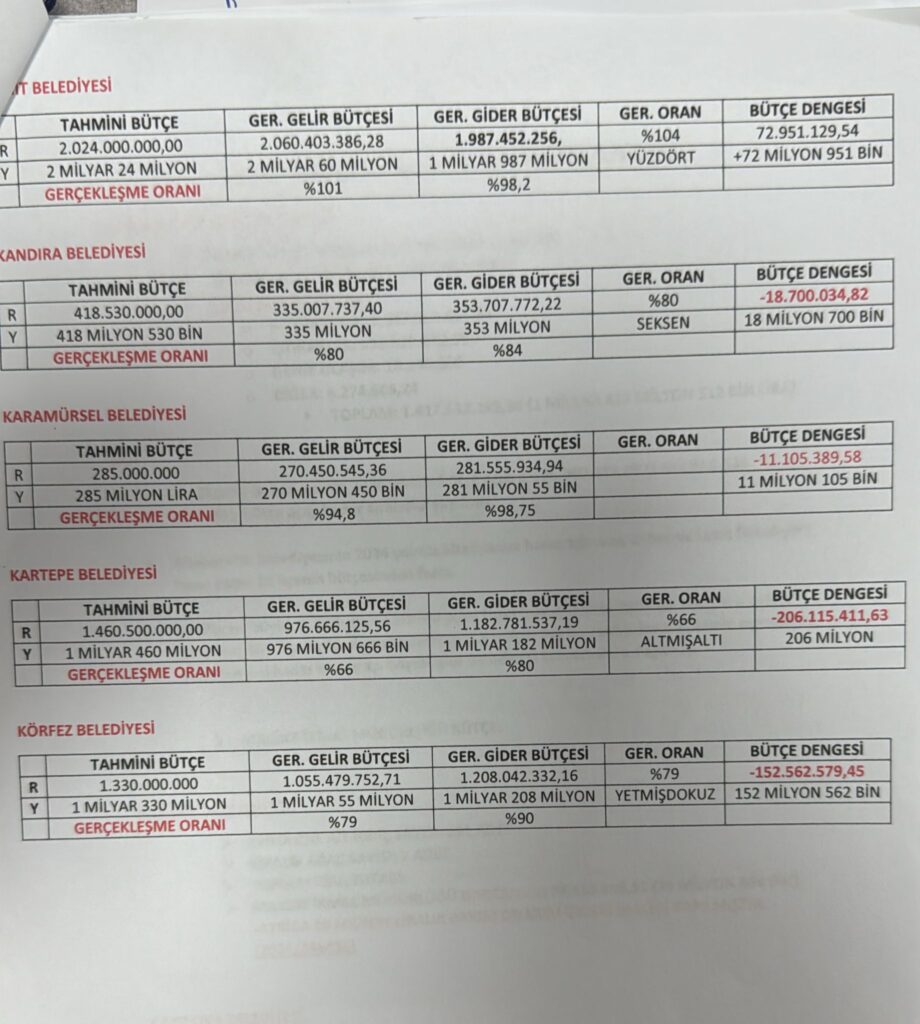 Belediye meclislerinde 2024 yılı kesin hesap hesaplarının oylanmasının ardından eleştiri oklarının hedefi olan İzmit Belediye Başkanı Fatma Kaplan Hürriyet, Kartepe, Gölcük, Başiskele ve Körfez belediyelerinin ardından Gebze'de Çayırova ve Gebze Belediyelerinin bütçe harcamalarını masaya yatırdı.