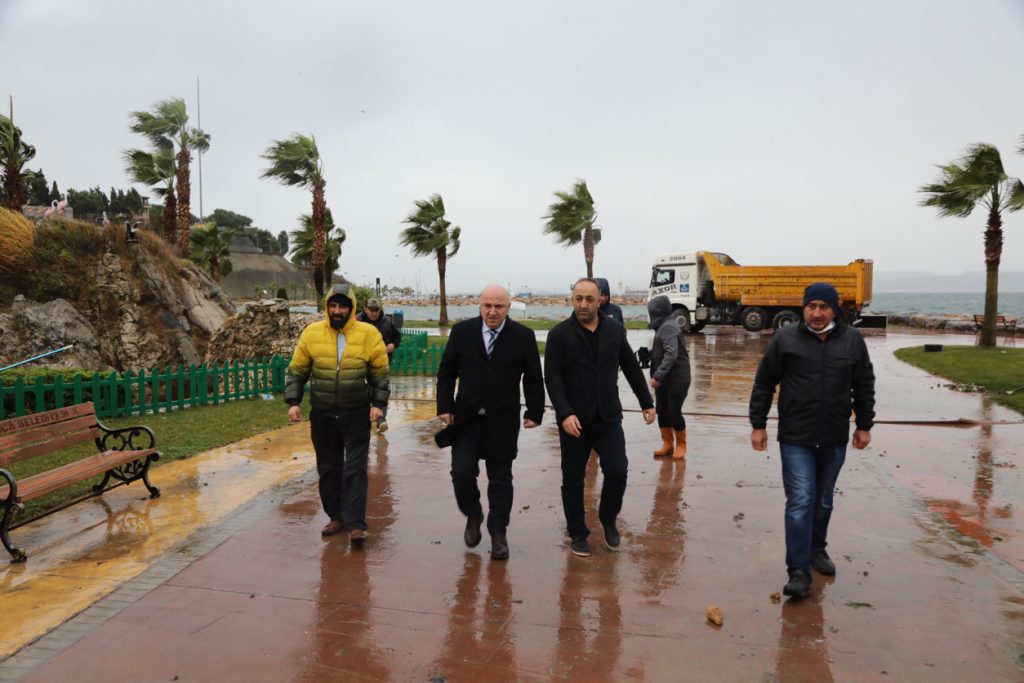 Kuvvetli lodos ve yağış, gece boyunca Darıca’da hayatı olumsuz etkilerken ekipler de ortaya çıkan hasarı gidermek için titiz bir çalışma yürütüyor. Darıca Belediye Başkanı Muzaffer Bıyık da sabahın ilk ışıklarıyla birlikte sahadaki çalışmaları inceleyerek bilgi aldı. Başkan Muzaffer Bıyık, çalışmalar hakkında bilgi vererek “Darıca Belediyesi olarak Meteoroloji Genel Müdürlüğünden yapılan sağanak yağış ve fırtına uyarısına yönelik ekiplerimizle hazırlıklarımızı yaptık. Görevli ekiplerimiz tüm gün teyakkuz halinde olacak. Gönül ister ki böyle durumlar hiç yaşanmasın, ancak doğal afetler de adı üzerinde hayatımızın bir gerçeği. Görev sahamız içinde vatandaşlarımızın güvenliğini ve refahını sağlamak için şimdiye kadar olduğu gibi, bundan sonrasında da gece gündüz canla başla hizmet vermeye devam edeceğiz” dedi.