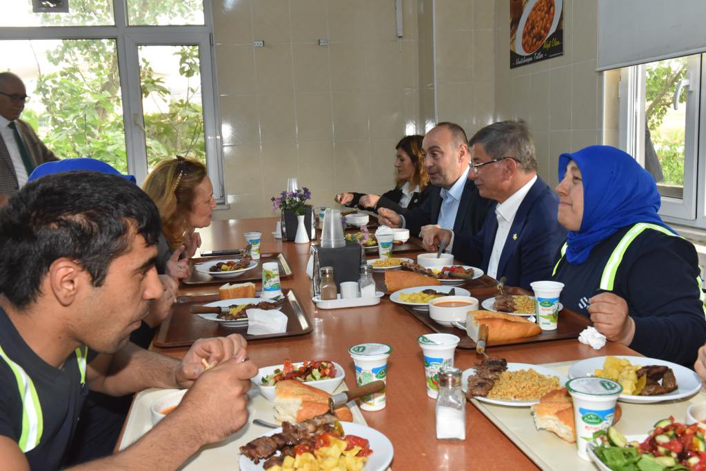 Burada fabrika çalışanlarıyla bir araya gelen Ahmet Davutoğlu, işçilerle bir süre sohbet ettikten sonra fabrika yemekhanesinde öğlen yemeğine katıldı.