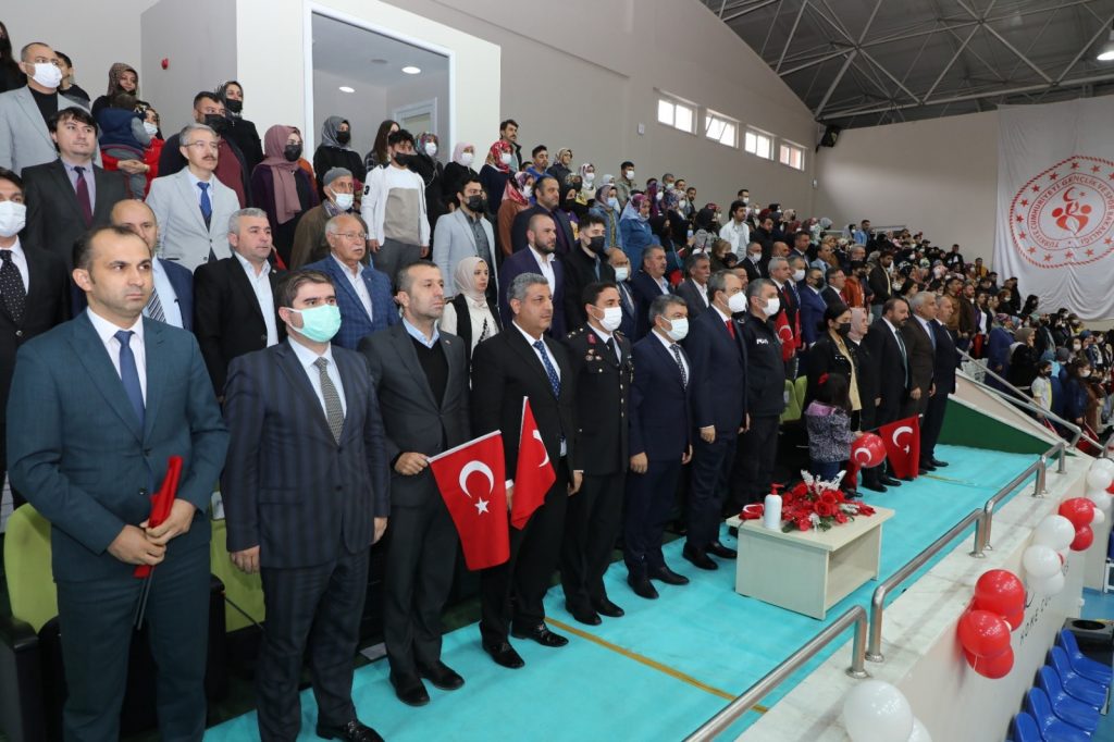 Kapalı Spor Salonundaki kutlama töreni, saygı duruşu ve İstiklal Marşı’nın okunmasının ardından İlçe Milli Eğitim Müdürü Murat Balay’ın günün anlam ve önemini belirten konuşması ile devam etti. Balay “Her yıl büyük bir gururla yaşadığımız 23 Nisan Ulusal Egemenlik ve Çocuk Bayramı’mıza katılımlarından dolayı herkese teşekkür ediyorum. 23 Nisan Çocuk Bayramı, Gazi Mustafa Kemal Atatürk tarafından dünyada çocuklara armağan edilmiş tek bayramımızdır. Çocuklarımız geleceğimizin büyükleridir. Sadece Türk çocuklarına değil dünya çocuklarına armağan edilen tek bayramdır. Türkiye Büyük Millet Meclisi’nin açılışının 102'inci kuruluş yıldönümünde yine bir Milli Egemenlik ve Çocuk Bayramı'nda coşkuyla, sevinçle, kıvançla, milletçe bir araya gelmenin mutluluğunu yaşıyoruz” dedi.
