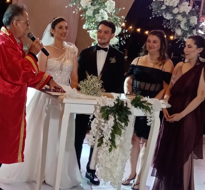 Nikah memuru genç çiftin nikahını törenle kıydı ve evlilik cüzdanını gelin hanıma teslim etti.