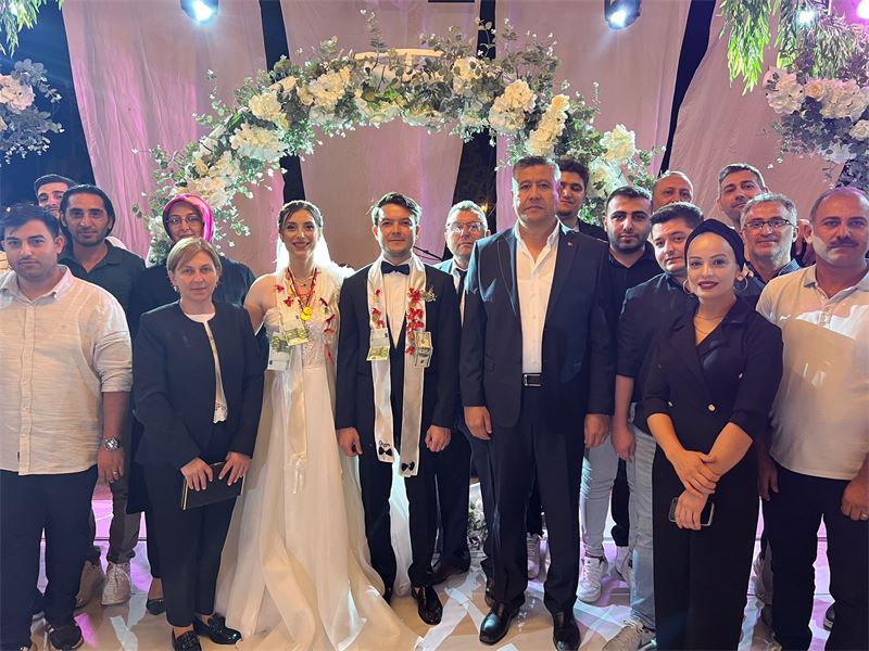 Düğün merasimine katılan Türk Metal Sendikası 1.Nolu Şube: Türk Metal Sendikası Gebze 1 Nolu Şube Başkanı Mustafa Teke, yönetimi ve sendika üyesi olan işyerleri çalışanları ile birlikte Türk Metal Sendikası Genel Başkanı Uysal Altundağ'ın hediyesini takdim ederek genç çifti tebrik etti.