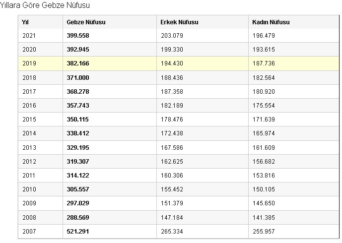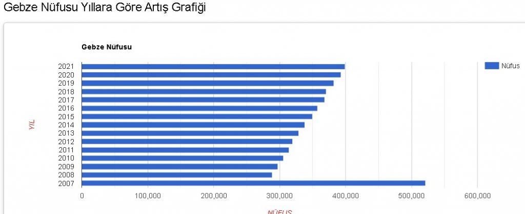 www.nufusu.com'un grafikli verilere göre ise Gebze'nin nüfus artışı ve yoğunluğu durumu şöyle: