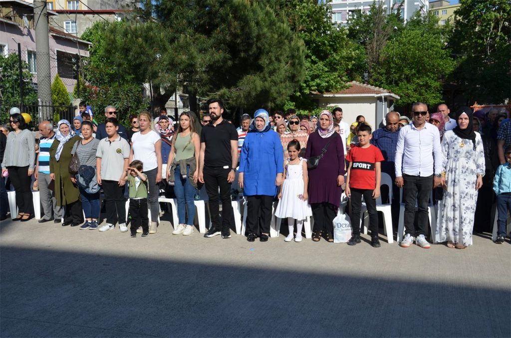Okulun bahçesinde düzenlenen törene, Okul yönetimi, öğrenciler ile kalabalık sayıda öğrenci velisi hazır bulundu.