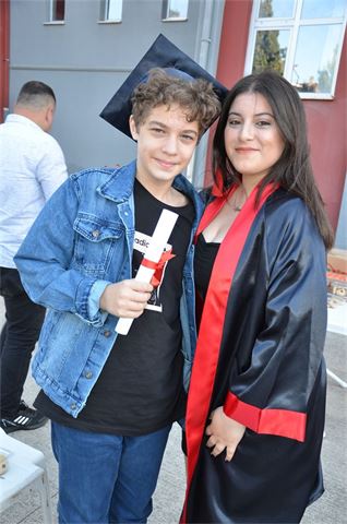 Yenikent "M.Üstündağ Okulu 6. sınıf öğrencilerinden Yiğit Aras Karataş da okula gelerek okuldan mezun olan Ablası Nisa Ayça Karataş'ı böyle tebrik etti.