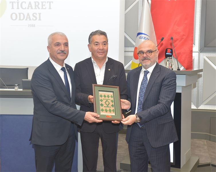 Gebze Ticaret Odası Yönetim Kurulu Başkanı Abdurrahman Aslantaş ve Oda Meclis Başkanı Oğuz Şerifalioğlu, Konuk Konuşmacı Hüseyin Bozdağ'a günün anısına plaket sundu.