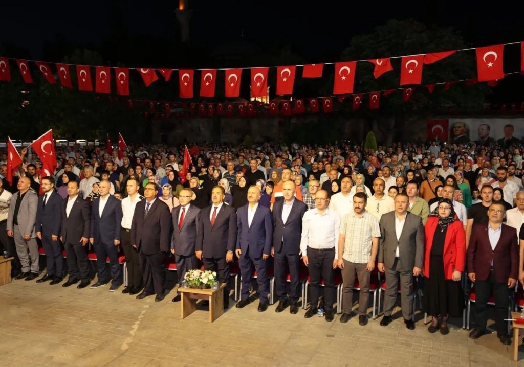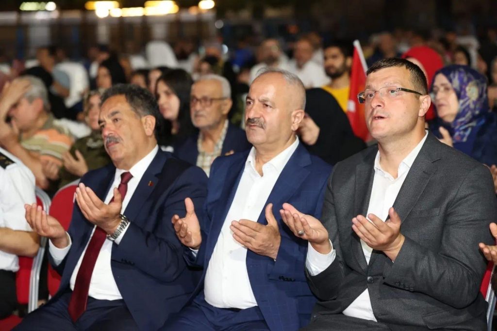Kaymakam Güler’in ardından konuşan KBB Başkan Vekili Yaşar Çakmak ise, “6 yıl önce, yine bir Cuma akşamı ülkemizde çok önemli bir geceyi yaşadık. Anadolu’yu Türk’ün yurdu haline getiren atalarımız, 1453’te Doğu Roma İmparatorlu’nu sona erdirdi. Dünya hak ile batılın, iyi ve kötünün hep mücadelesi içinde. Güç ile kuvvet ile milletimizi yıkamayacağını bilenler, hep entrikaya başvurdular. Altı yıl evvel 251 vatan evladı, bu hainler yüzünden yaşama gözlerini yumdu. 2 binin üzerinde gazimiz oldu. Burada bulunanların birçoğu da o gece meydanlara koştu. Sayın cumhurbaşkanımızın talimatlarıyla sahaya indik. Biz bu gece meydanı dolduran gençlerle gurur duyuyoruz. O gece kurşuna siper olan gençlerimiz olduğu için çok şanslıyız. Bu vatan asla bölünmeyecek, ezanlar dinmeyecek, bayraklar inmeyecek” dedi. Program daha sonra Doç. Dr. Oğuzhan Aydın’ın 15 Temmuz gecesine ait yaşananlara ilişkin paylaşımları, Serdar Tuncer’in şiir dinletisi, Tarkan Köylü’nün kum sanatı gösterimi ve diğer etkinlikler gece boyunca devam etti.