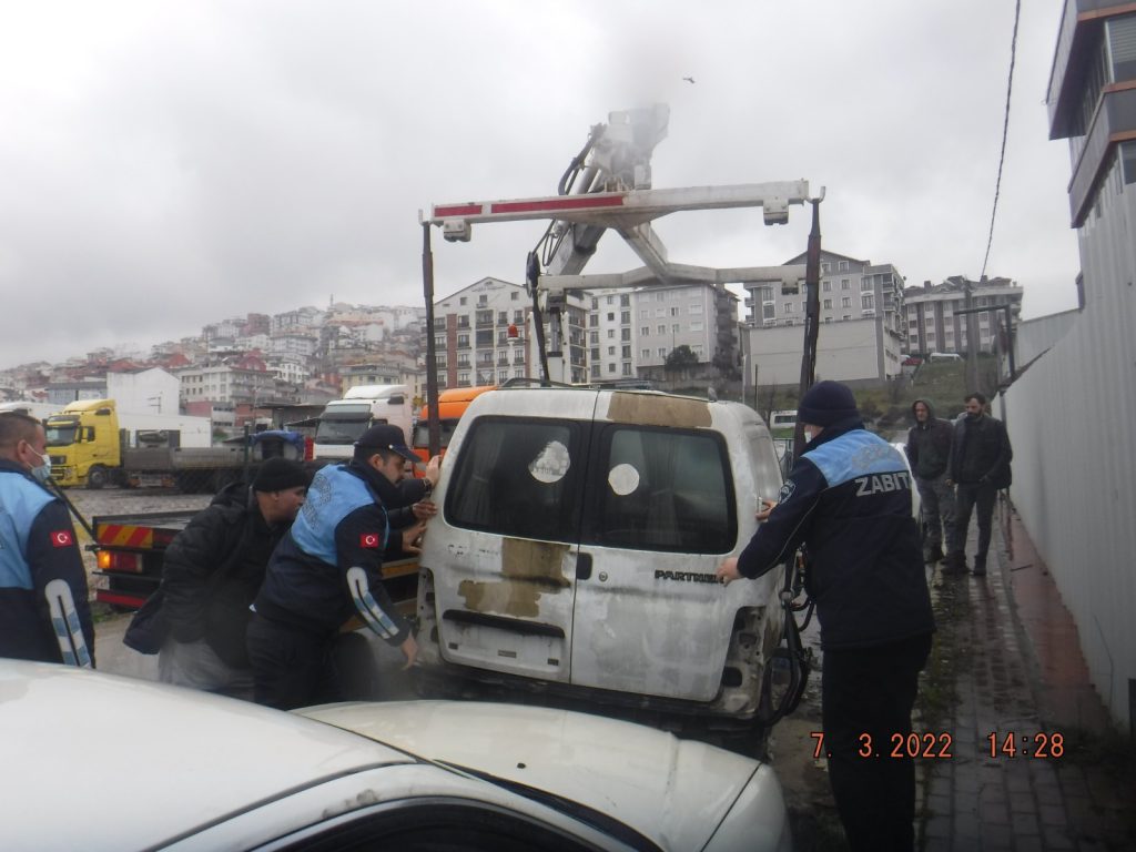Gebze’de hurda araçlar kaldırılıyor. İlçe genelinde hurda ve atıl durumda sokağa terk edilmiş araçlar, Gebze Belediyesi Zabıta Müdürlüğü, İlçe Emniyet Müdürlüğü ve Kocaeli Büyükşehir Belediyesi Zabıta Müdürlüğü ekipleri tarafından tespit edilerek kaldırılıyor. İçişleri Bakanlığı İller İdaresi Genel Müdürlüğünün 28.01.2022 tarihli ve 23594 sayılı Hurda/ Atıl araçların toplanması konulu genelgesine istinaden Gebze Belediyesi Zabıta Müdürlüğü, İlçe Emniyet Müdürlüğü ve Kocaeli Büyükşehir Belediyesi Zabıta Müdürlüğü ekipleri tarafından; ilçe genelinde yol kenarlarına ve boş alanlara bırakılan, ulaşımı engelleyen, çevre ve görüntü kirliliğine neden olan hurda / atıl durumundaki araçların tespiti yapılarak sahibi olanlara araçlarını kaldırmaları için yasal uyarılar yapılarak süre veriliyor. Süre sonunda uyarıları dikkate almayan vatandaşların araçları çekici veya iş makineleri vasıtasıyla kamyonlara yükleyip yediemin otoparkına ve Pelitli Mahallesi’nde bulunan Gebze Belediyesi Fen İşleri Müdürlüğü şantiyesine çekiliyor. Yetkilerin yaptığı açıklamada vatandaşlarımızın sokağa terk edilmiş hurda ve atıl durumda tehlike arz eden araçların kaldırılması veya sahiplerine ulaşılarak kaldırılması hususunda şikayet ve taleplerini 0262 641 78 08 numaralı telefona bildirmelerini istedi.
