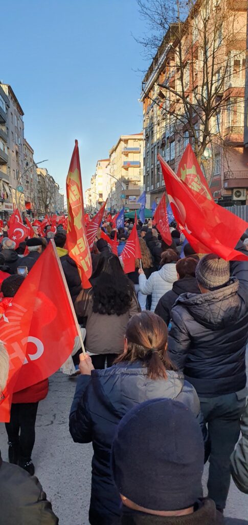 Partimizin Cumhurbaşkanı adayı olmak için çıktığı yolda yapmış olduğu ziyaretlerle, mitinglerle gördük ki Ekrem İmamoğlu zaten bu ülkenin cumhurbaşkanıymış. Bunu saray da gördü ve anayasayı, hukuku tanımayan güç düğmeye bastı. Ama bilmiyor ki Ekrem İmamoğlu kolay yutulacak bir lokma değildir. Boğazınızda kalır. Bu millet Sayın İmamoğlu'nu kimseye yedirmez. Ekrem İmamoğlu bu milletin öz be öz evladıdır, millete emanettir. Ülkemizin dört bir yanında gerçekleri gören yurttaşlarımız haksızlığa, hukuksuzluğa karşı geliyor. Buradan direnen, umudumuzu yeşerten herkese selam olsun. Haklı isyanını haykıran herkese selam olsun. Örgütlü gücün önünde durabilecek kimse yoktur. Yan yana olduğumuz sürece güçlüyüz. Omuz omuza dayanışma içinde olduğumuz sürece güçlüyüz. Umudunuzu sakın ola ki kaybetmeyin. Bizler gücünü Kuvayı Milliye’den almış, birlikte kurtuluş savaşını kazanıp, bir ülkeyi yoktan var etmişiz. Yılmayacağız, asla pes etmeyeceğiz. Saray bilsin ki biz halkız ve mutlaka kazanacağız. Üniversitelerimizle, işçilerimizle, köylülerimizle, kadınımızla, erkeğimizle mutlaka biz kazanacağız çünkü biz halkız ve haklıyız” dedi.