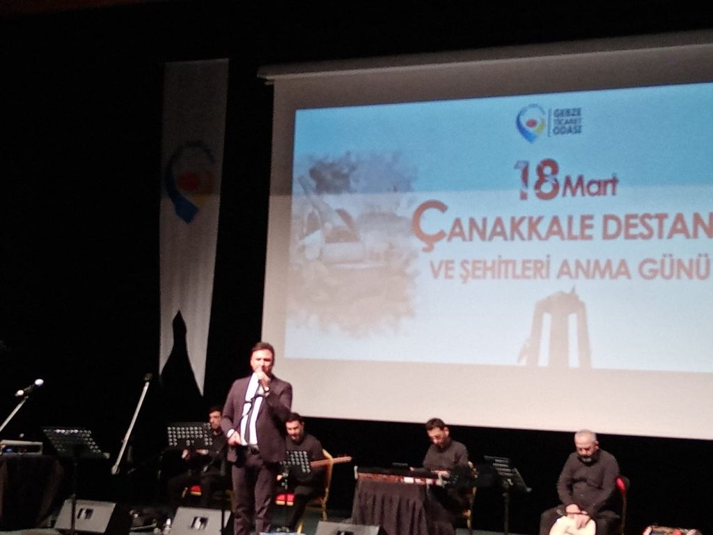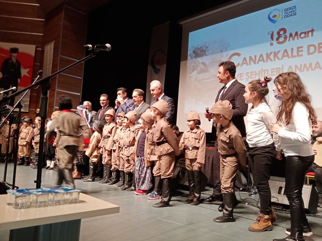 Gebze Ticaret Odası, Çanakkale Zaferi’nin 107. Yılı münasebetiyle 18 Mart Çanakkale Destanı ile Şehitlerimizi Anma Programı Düzenledi. 18.03.2022, (Bugün) saat 18:30’da Gebze Osman Hamdi Bey Kültür Salonu’nda başlayan ve 21:30 gibi son bulan programa gerek protokol gerekse izleyici bakımından büyük katılım oldu. Gebze Ticaret Odası Yönetim Kurulu Başkanı Nail Çiler ile Oda Yönetiminin ev sahipliğinde gerçekleşen programa Kocaeli Büyükşehir Belediyesi İlçe Belediyeler Koordinatörü İbrahim Pehlivan, Gebze Kaymakamı Mustafa Güler, Gebze Nüfus Müdürü Hasan Aydın, Gebze İlçe Emniyet Müdürü Uğur Adil Bilgili, Gebze İlçe Milli Eğitim Müdürü Şener Doğan, İYİ Parti Gebze İlçe Başkanı Av. Burak Uluköylü, , MHP Gebze İlçe Yönetimi, DEVA Gebze İlçe Başkanı Av. Kemal Memiş gibi Siyasi Partilerin bir çok İlçe Başkanı ile yöneticileri, Gebze Ticaret Odası Meclis Üyeleri, Sivil Toplum Kurum ve Kuruluşlarının Başkan ve Temsilcileri, Muhtarlar, programda görevli öğretmen ve öğrencilerle vatandaşlar katıldı. GTO Yönetim Kurulu Başkanı Nail Çiler'in Eşi Fatma Sevgi Çiler de programda yerini aldı. Program kokteyl ve Fotoğraf sergisinin açılışı ile başladı. Akabinde, programın yapılacağı salona geçildi ve Saygı Duruşu ile İstiklal Marşımız ile ana programa geçildi. Protokol konuşmalarının ardından, Çanakkale Şehitlerini Anma Belgeseli gösterimi yapıldı. Daha sonra Türk Halk Müziği Sanatçısı Recep Ergül'ün sahne aldığı programda Çanakkale türküleri ile Aziz Şehitlerimiz için ağıtlar söylendi.