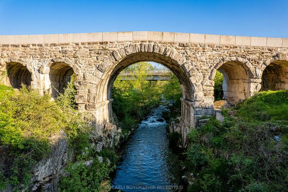 Tarihi ticaret yollarından biri olan ipek yolu ile (Nikomedia) İzmit’e ulaşan, milattan sonra 50.Yıllarda Romalılar tarafından inşa edilen tarihi Kutluca Taşköprü (Fotoğraf: Kocaeli Büyükşehir)