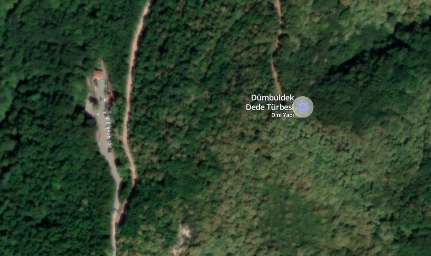 Yaklaşık 6 yıl önce Dernek Başkanı Ali Osman Kılcan'ın da çabalarıyla Bölge Belediyesine açtırılan yoldan aracımız ile tepenin zirvesindeki şifalı suyun geldiği noktada bulunduğu belirtilen "Şehid Dümbüldek Dede" Türbesine varıyoruz. Yol gelişen ağaçların dallarının uzaması nedeniyle artık zor geçit veriyor, ancak herkesin buraya çıkamaması güzel bir olay zira herkes çıksa her tarafını çöp yapacak kadar insanımız maalesef ve ne yazık ki çevre zaafına sahip bulunuyor.