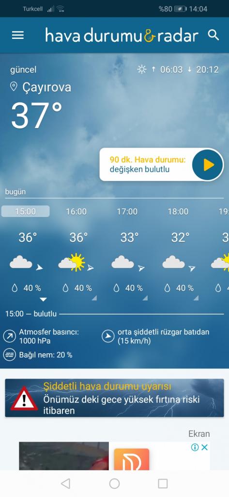 Bölgemizde an itibariyle 38 derece olan hava sıcaklığının önümüzdeki yakın saatlerde birden 10 derece düşerek 28 dereceye gece saatlerinde de gök gürültülü sağanak yağış ve sert rüzgar ile 22 dereceye kadar düşmesi bekleniyor.