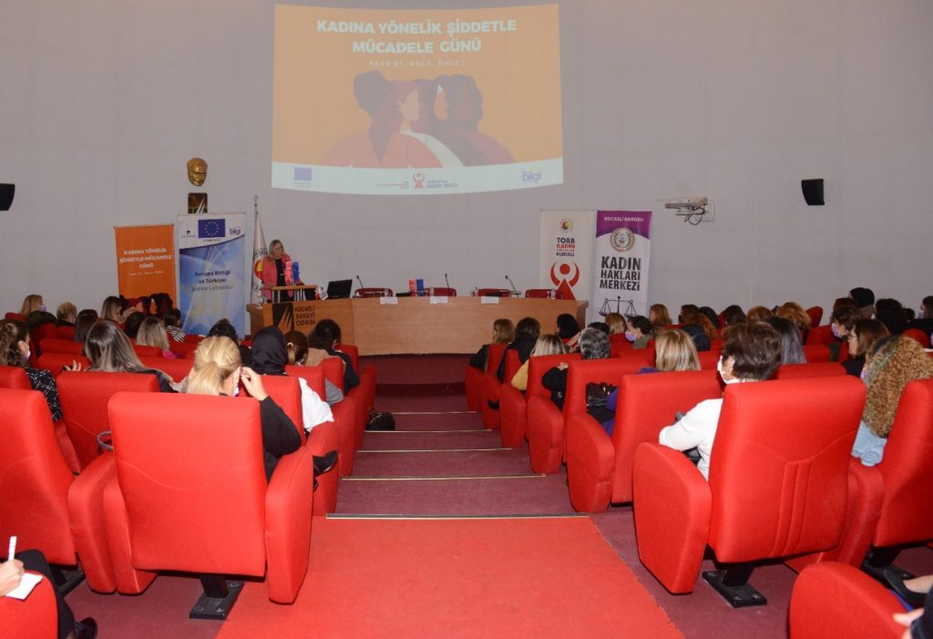 Kocaeli AB Bilgi Merkezi ve TOBB Kocaeli Kadın Girişimciler Kurulu organizasyonunda ‘Kadına Şiddetle Mücadele ve Kadın Hakları’ konulu panele kadınların katılımı yoğun oldu.