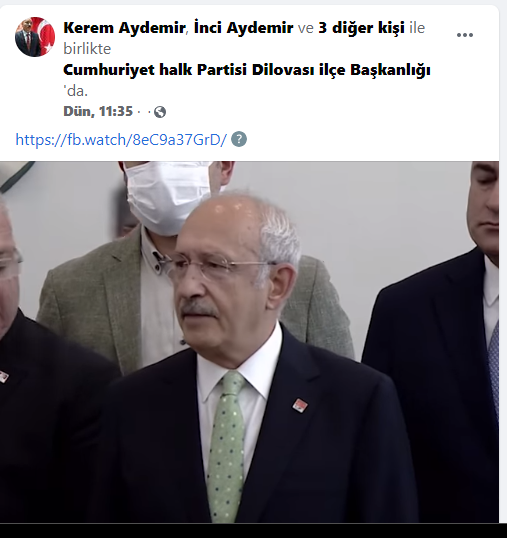 Kalp krizi sonucu aramızdan ayrılan CHP Dilovası İlçe Başkanı Kerem Aydemir, sosyal medyadaki sayfasında son paylaşımı ise son olarak katıldığı ildeki ilçe başkanları toplantısı olmuş. Kerem Başkan, vefat etmeden önce İl Başkanı Yıldızlı diğer ilçe başkanları ile birlikte çekilen fotoğrafını ve dün de kendi sosyal medya sayfasından CHP Lideri Kılıçdaroğlu'nun videosunu böyle paylaşmış: