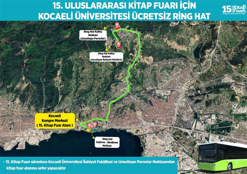 Ziyaretçilerin fuar alanına kolay ve konforlu bir şekilde ulaşabilmesi amacıyla kent merkezi ve Kocaeli Üniversitesi’nden olmak üzere toplam dört farklı noktada ücretsiz ring seferleri planlandı. Şehir merkezinde “İnterteks Fuar Alanı” ve “Sahil Otopark”, Kocaeli Üniversitesi’nde ise “Umuttepe İlahiyat Fakültesi” ile “Umuttepe Peronlar” noktalarından hareket edecek ring araçları 9 gün boyunca ziyaretçileri fuar alanına taşıyacak.