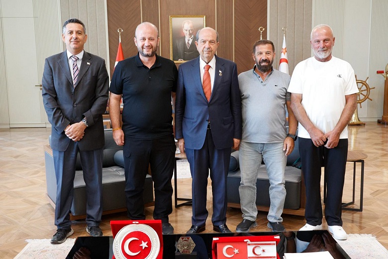 Altınoluk Pastaneleri sahibi İbrahim Bıyıklı, Eurocoast İnşaat firması sahibi Ümmet Bilaloğlu, Hüseyin İpekçioğlu ve Cumhurbaşkanı Ersin Tatar’ın başdanışmanı Prof.Dr. Hüseyin Işıksal’ın yer aldığı ekiple birlikte Kuzey Kıbrıs Türk Cumhuriyeti Cumhurbaşkanı Ersin Tatar’ı ziyaret etti.