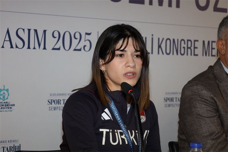 6. İslami Dayanışma Oyunları’nda milli forma altında mücadele veren ve 48 kiloda mindere çıktığı organizasyonda altın madalyanın sahibi olarak ay yıldızlı bayrağımızı Riyad’da göndere çeken Kağıtsporlu Judocu Tuğçe Beder, sempozyumda duygu ve düşüncelerini açıklayarak, “Kocaeli, sanayi ve turizm niteliklerinin yanında spor altyapısı bakımından da Türkiye’nin öncü şehirlerinden. Belediyemizin sağladığı imkanlar ve destekler sayesinde ulusal ve uluslararası başarılar elde ettim. 2024 yılında Avrupa 5’inciliği ile kulübümü ve ülkemi temsil etme şerefine nail oldum. Bu sadece benim başarım değil, bir şehrin desteği, kültür birikimi ve inancı sayesinde mümkün oldu. En büyük ilham kaynağım bu şehirde yetişip ulusal ve uluslararası arenada şampiyonluk kazanan abi ve ablalarım oldu” dedi.