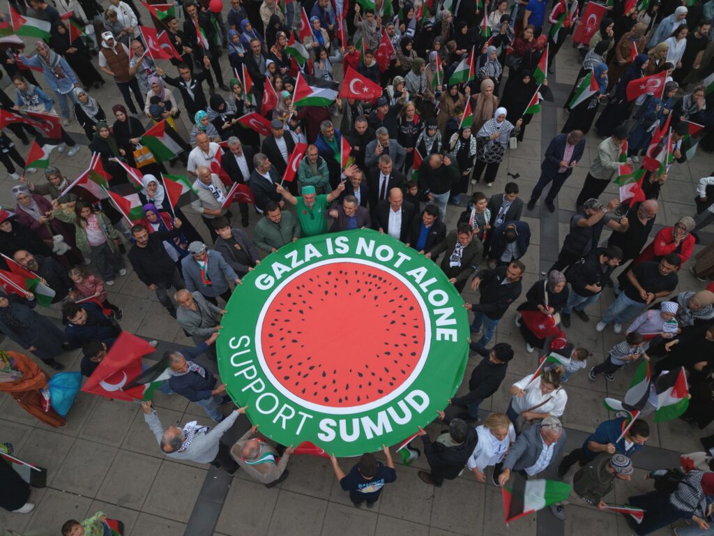 İsrail’in zulmünü barış çağrısıyla bitirmek adına yola çıkan Sumud Filosu’na Kocaeli’de binlerce vatandaş destek verdi. Siyasi partilerin kol kola katıldığı destek mitinginde hep bir ağızdan dualar edildi.