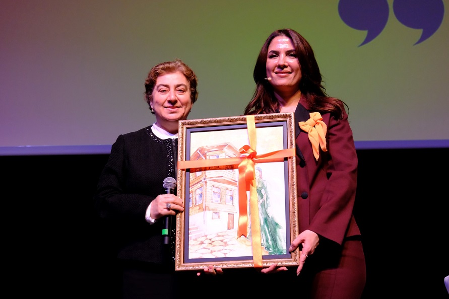 Programın sonunda Prof. Dr. Figen Büyükakın, Yazar Dilek Cesur’a tablo hediye etti.