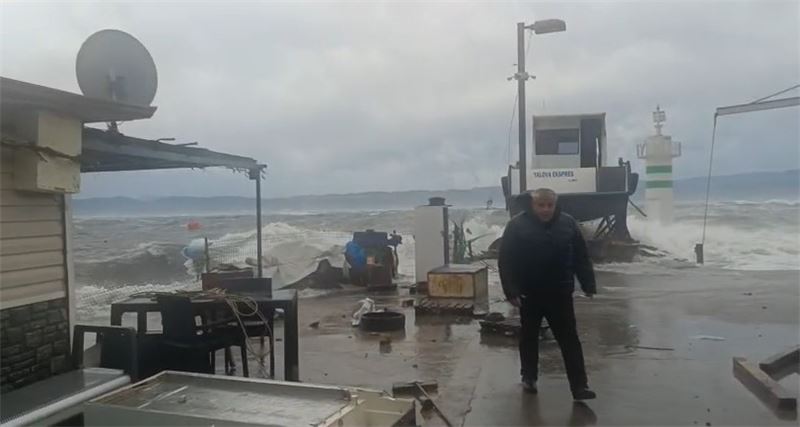 ÇOK SERT ESEN LODOS FIRTINASI SAHİLDE NE VARSA HEPSİNİ KISA SÜREDE PARÇALADI