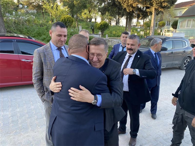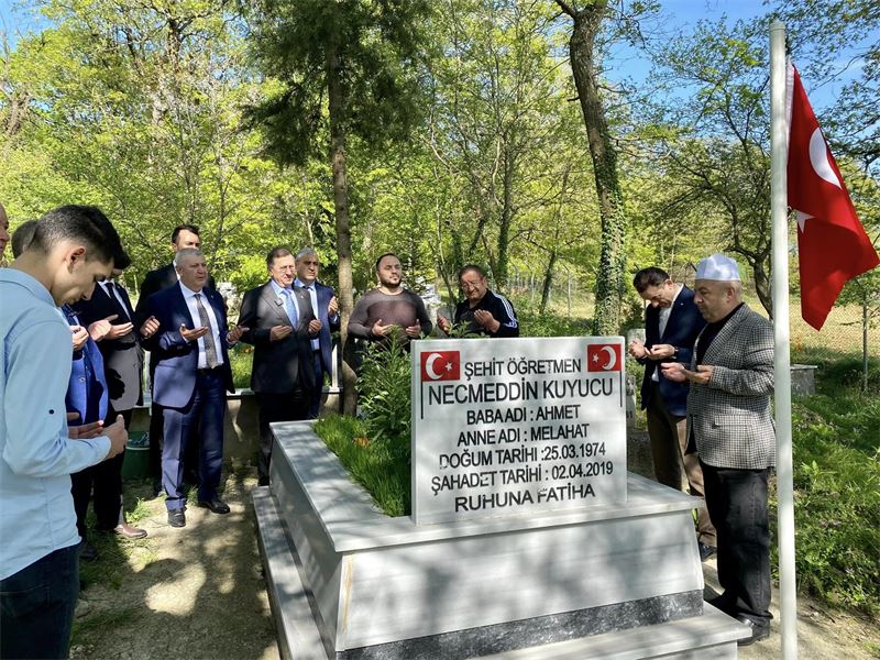 Türkkan ve beraberindekiler, Öğrencisi tarafından katledilen Şehit Öğretmen Necmeddin Kuyucu’nun Ahatlı köyündeki kabrinde dua etti.